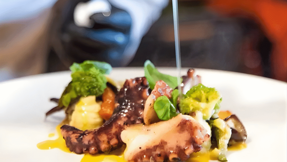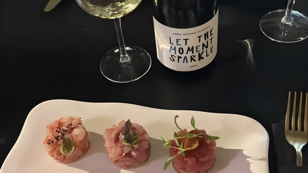 O cardápio acompanha o tom: uma cozinha leve, refinada e profundamente ligada ao mar, pensada para exaltar a taça e não competir com ela.