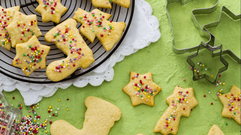 • Corte os biscoitos com cortadores em formato de Natal ou de Epifania (estrelas, corações, meias, figura da Befana, arvorezinhas etc.).​